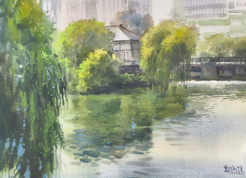 鄭炳煌 湖畔流光 水彩 對開 2025.8.17