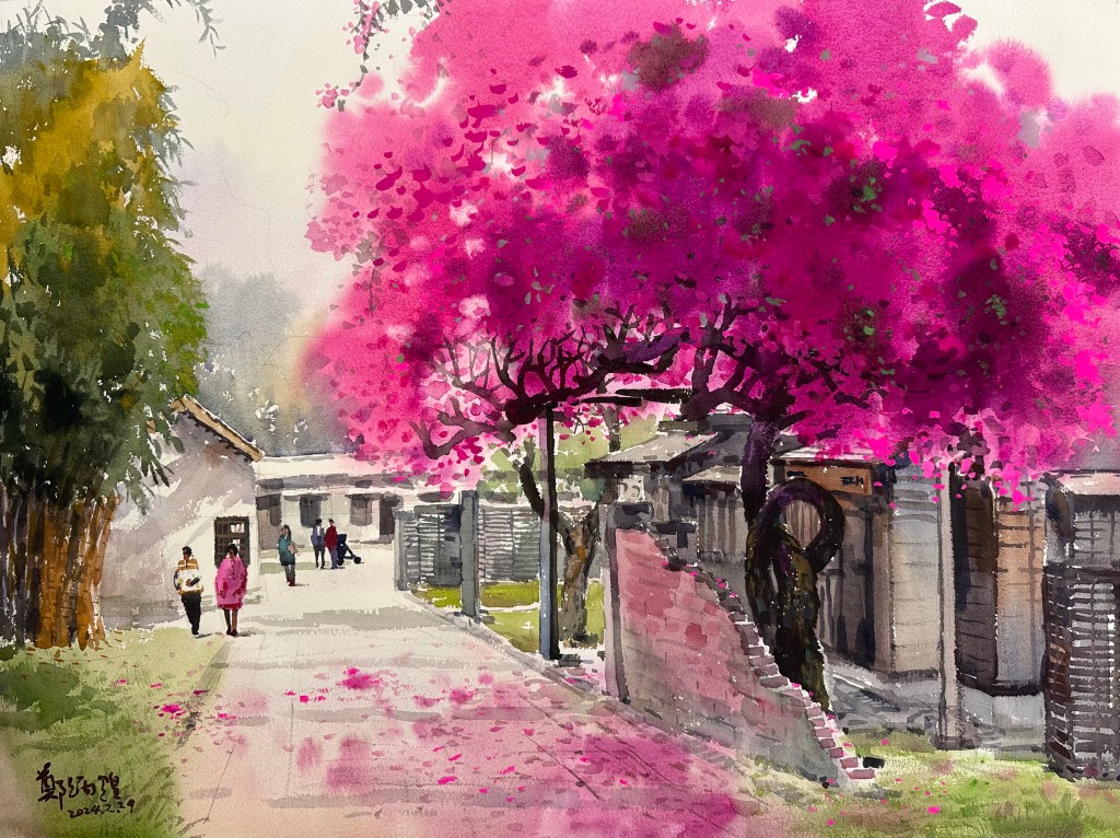 鄭炳煌 春意盎然 水彩 對開 20240229