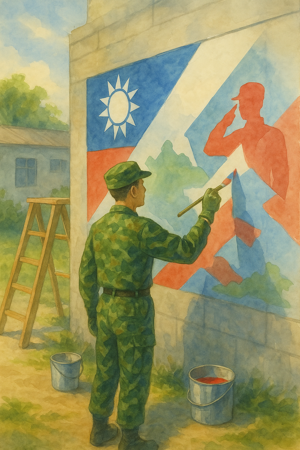 退伍後,他背著畫具重新回到社會——畫筆,依然未曾鬆手。這一次,他的創作軌跡將更加自由,也更加遼闊。