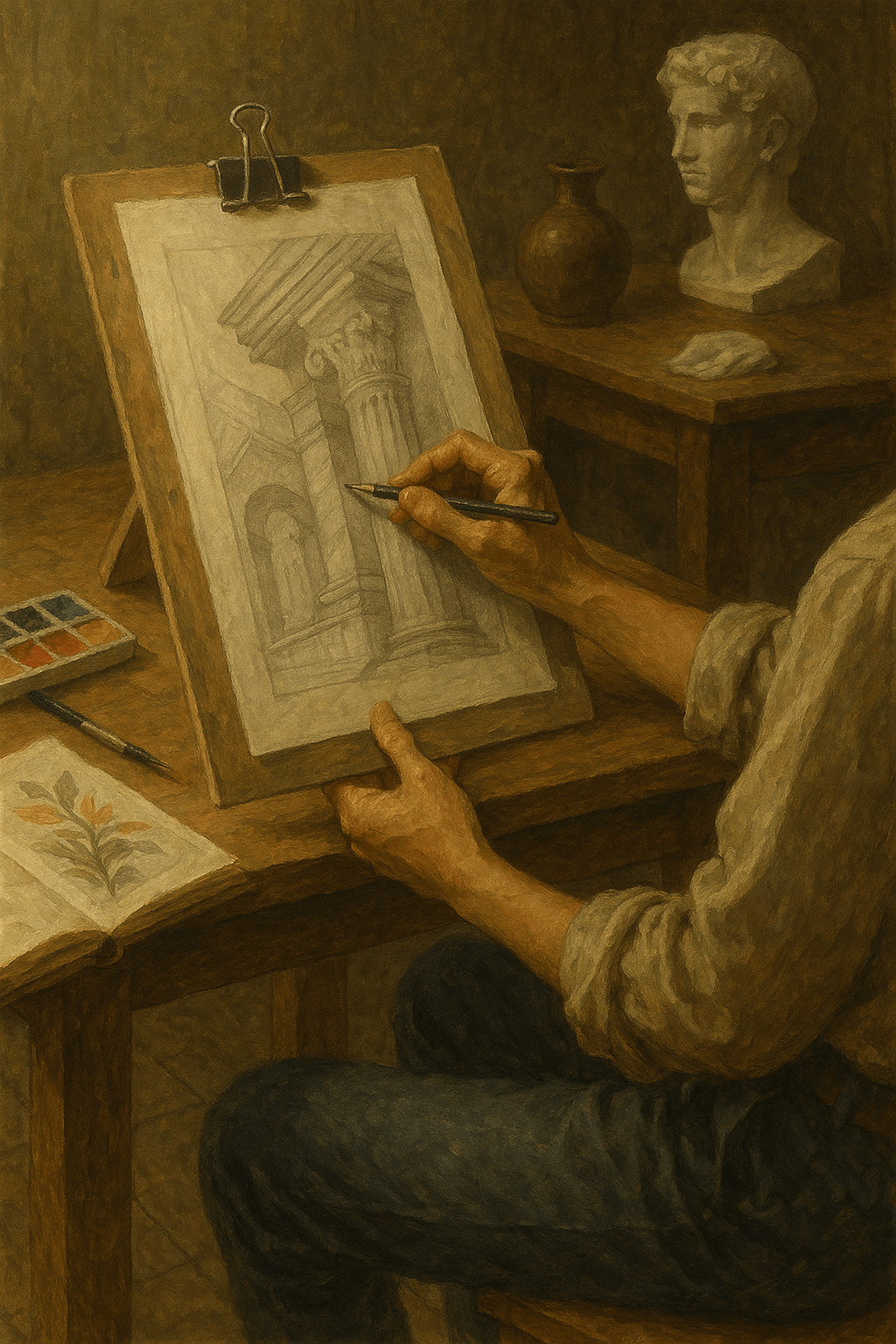 大二課程進一步擴展,涵蓋古典油畫、人體速寫、雕塑、寫生油畫,而水彩與水墨是選修課程。那時他總希望趁能學的時候,把所有可能性都試過,不留遺憾。