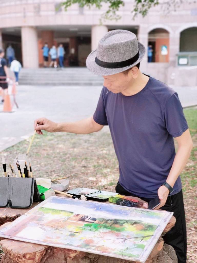 教壇三十七載,他以畫育人,筆耕不輟。退休前夕,他將身分從教師轉為創作者,回到初心,用畫筆為自己的人生續寫風景。