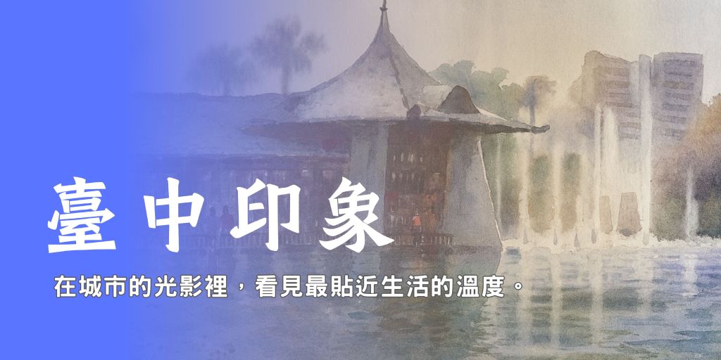 這面作品牆,收錄了我在台中多年寫生與創作的足跡。湖心亭的晨霧、文學館的樹影、彩虹眷村的巷弄色彩,都在這裡一幅幅排開,隨時間持續累積,成為台中與畫筆共同寫下的視覺日記。